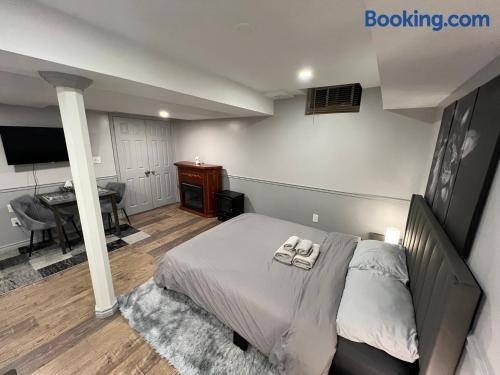 يقع مكان إقامة "Modern, basement apartment, close to airport" في تورونتو على بُعد 7.1 كم من جامعة يورك و13 كم من مركز فوغان ميلز للتسوق، ويوفر واي فاي مجاني وجهاز تكييف. يقع مكان الإقامة على بُعد 6.