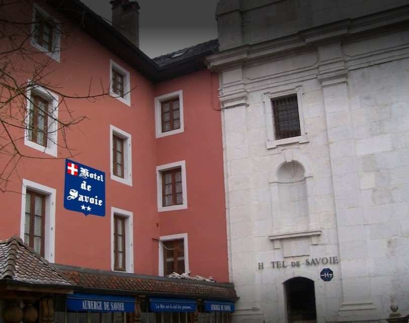 يقع فندق دي سافوا في مبنى يعود إلى القرن الـ 17 في مدينة آنسي القديمة، على بُعد 80 متر فقط من بحيرة آنسي، ويقدم غرف مطلة على القناة أو ساحة الفناء، كما تتوفر أيضًا خدمة الواي فاي مجانًا.