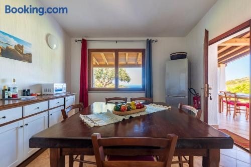 يوفر مكان إقامة "Villa Azzurra con piscina" تراس وإطلالة على البحر ومسبحاً خارجياً وحديقة، ويقع في تيرتينيا بالقرب من شاطئ سبياجيا دي فوكسي مانا (Spiaggia di Foxi Manna)، وعلى بُعد 26 كم من دوموس دي ياناس.