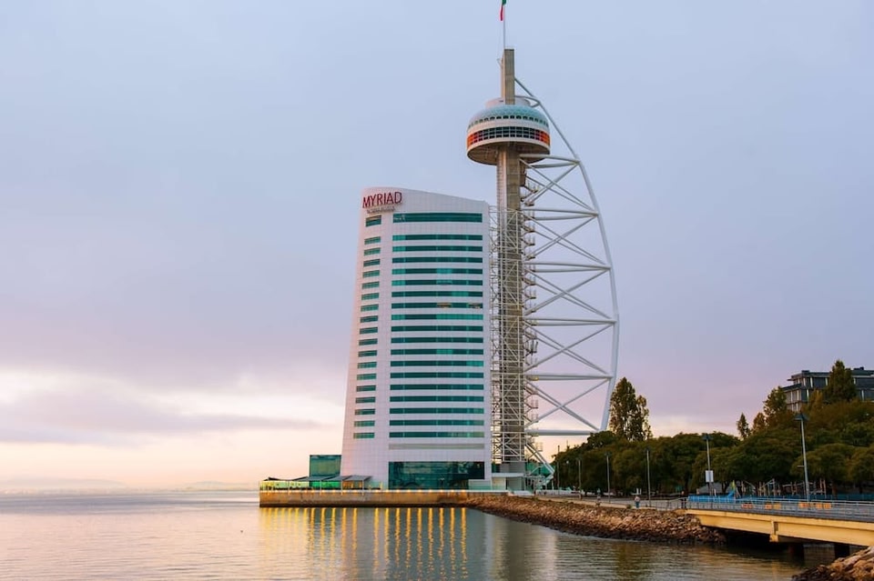 بجوار نهر تاجوس، بجوار أطول برج في البرتغال - برج فاسكو دا جاما الشهير، يقع فندق MYRIAD by SANA بتصميمه المهيب على شكل شراع.