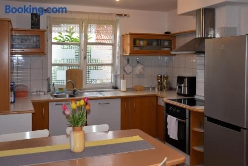 Featuring a peaceful setting, Apartments Pina in Nadgorica provides a private and comfortable stay just a short distance from key attractions. Experience convenience with a private entrance, air conditioning, and complimentary parking and WiFi.Comfort and ConvenienceRelax and unwind in rooms equipped with modern amenities, a fully equipped kitchen, and a private bathroom with thoughtful touches like slippers. Enjoy city views from your own balcony.Home Away From HomeWith a fully equipped kitchen, including a dishwasher and oven, feel at home while traveling. Relax in the seating area with a flat-screen TV and stay connected with free WiFi.Nearby AttractionsDiscover local attractions like Adventure Mini Golf Panorama and Stadium Stožice. Easily accessible from Ljubljana Jože Pučnik Airport, book your stay at Apartments Pina for a memorable experience.