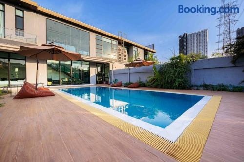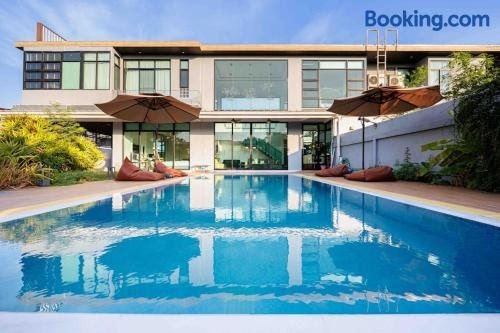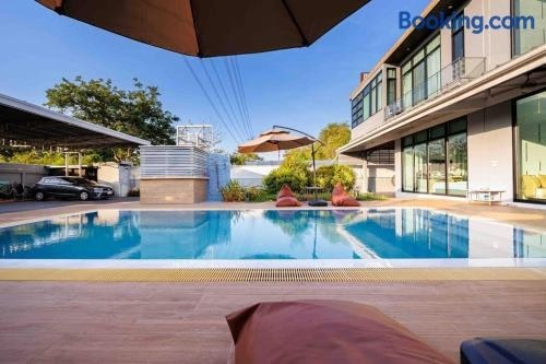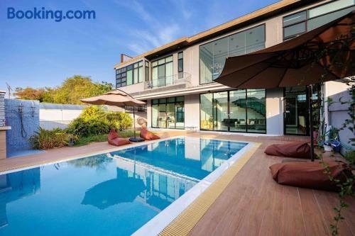 يقع مكان إقامة "曼谷市区700平五房独栋泳池别墅" في بانكوك، ويوفر حوض استحمام ساخن. يوجد في مكان الإقامة هذا مسبح خاص وواي فاي مجاني ومواقف خاصة للسيارات مجاناً. تتوفر (5) غرفة نوم في هذه الفيلا، وتلفزيون بشاشة مسطحة، ومطبخ فيه ثلاجة، وجهاز تكييف.