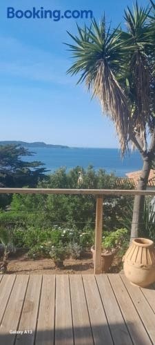Offering inner courtyard views, F3 RDC villa vue mer 180 face à la pointe de Giens is an accommodation situated in Carqueiranne, 17 km from Zenith de Toulon and 42 km from Circuit Paul Ricard. The air-conditioned accommodation is 2.