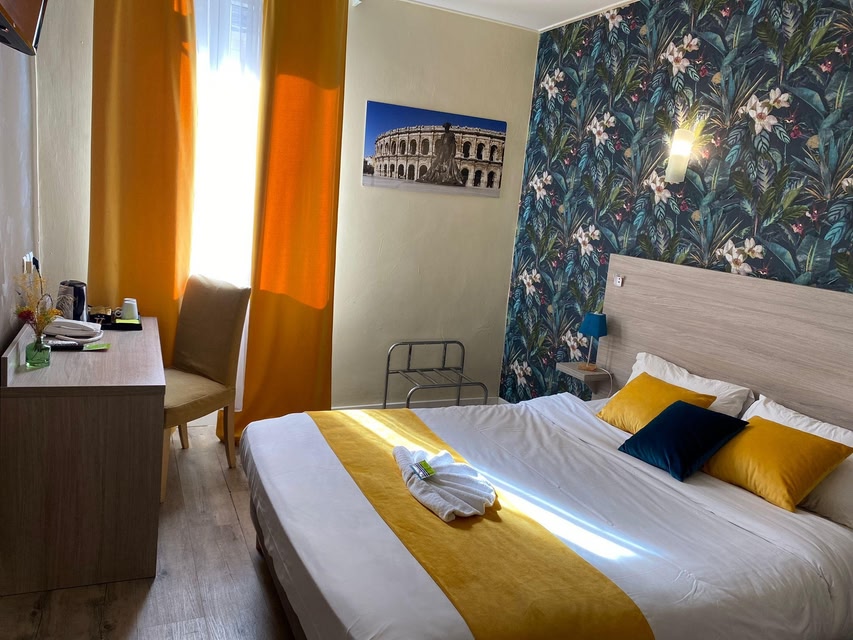 Empire Hotel is centrally located in Nîmes, a 5-minute walk from Nimes Cathedral and 6 minutes by foot from Les Halles de Nîmes. This hotel is 0.5 mi (0.8 km) from Maison Carree and 0.8 mi (1.3 km) from Nimes Arena. Make use of convenient amenities such as complimentary wireless internet access, concierge services, and a banquet hall. Continental breakfasts are available daily from 7:00 AM to 10:00 AM for a fee. Featured amenities include complimentary newspapers in the lobby, a 24-hour front desk, and multilingual staff. Event facilities at this hotel consist of a conference center and a meeting room. Stay in one of 27 guestrooms featuring flat-screen televisions. Complimentary wireless internet access keeps you connected, and digital programming is available for your entertainment. Conveniences include phones, as well as desks and complimentary newspapers.