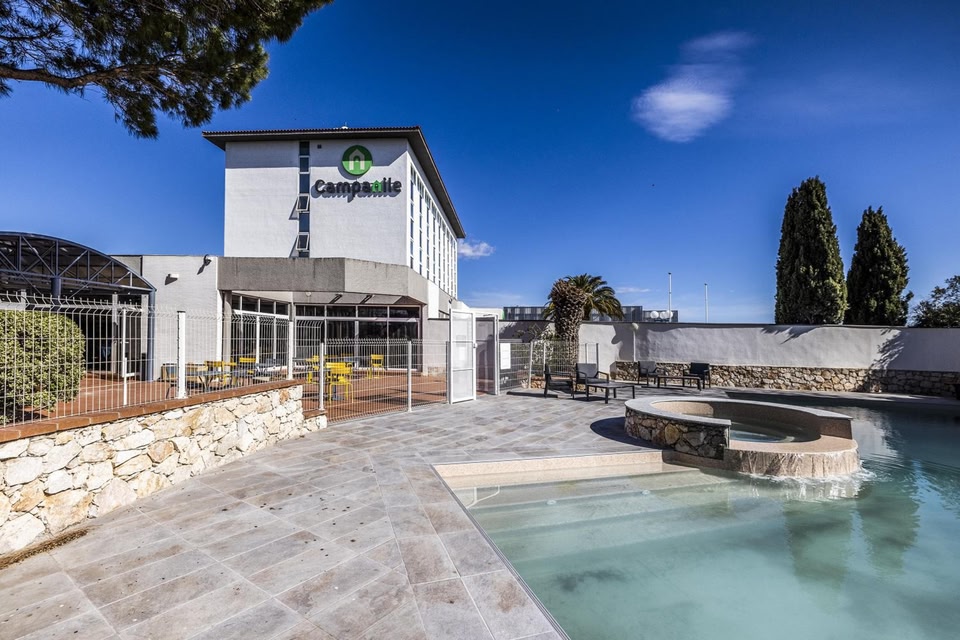 The Campanile Perpignan - Aéroport hotel is 30 km from the Spanish border. You can easily reach our hotel from the A9 motorway, the airport and the train station. Take advantage of our services: restaurant, lounge bar, outdoor pool and Mini Counter. On a business trip ? 5 equipped meeting rooms are available.