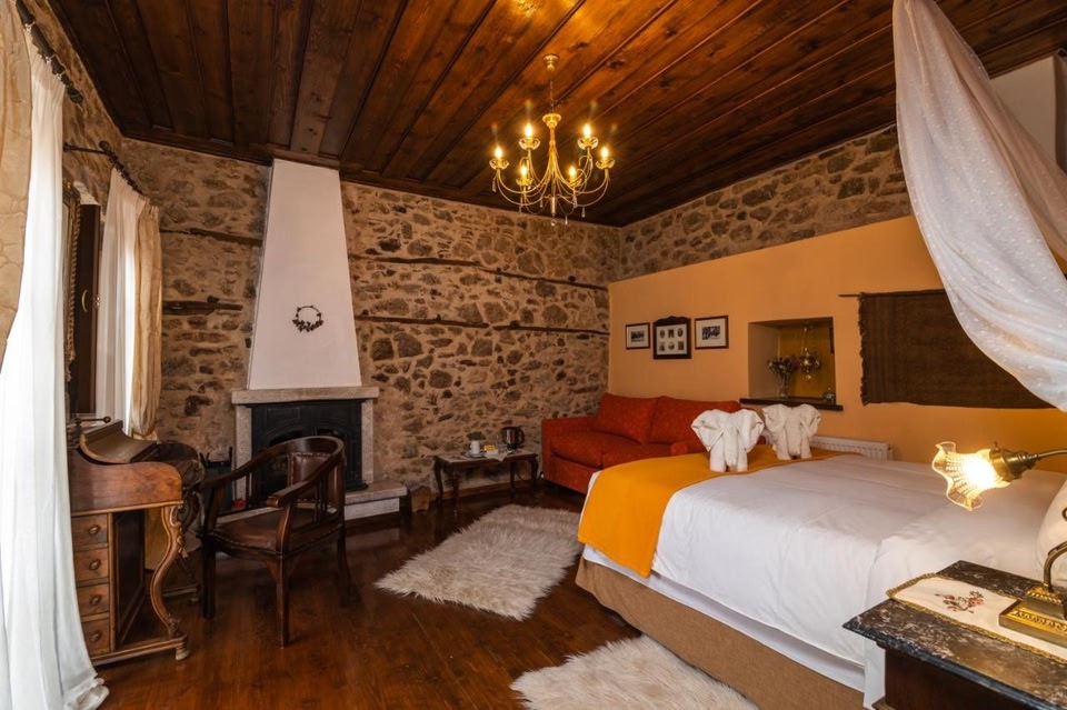 Historic Charm and Modern ComfortsUnique Decor and Antiques: Step back in time with 5 uniquely decorated rooms featuring authentic 19th century antiques, blending history with luxury.Luxurious Amenities: Enjoy handcrafted carpets, fireplaces, and even spa baths in select rooms for the ultimate relaxation experience.Cozy Common Areas: Unwind in the lounge with a grand fireplace and a bar, equipped with a big flat-screen TV, home cinema, free wifi, and table games.Experience the perfect blend of history and luxury at our traditional guesthouse in Dimitsana. Book now to secure your stay and create unforgettable memories. License number: 1086713