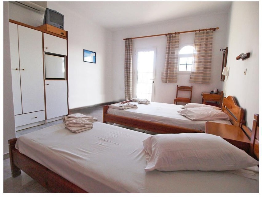 Located right on the sandy beach of Mylopotas in Ios, Noufaro features a fragrant courtyard with stone-paved alleys, a swimming pool with hydromassage jets and pool bar. Its air-conditioned accommodations comes with free Wi-Fi and a private balcony overlooking the garden or the mountain. Simply decorated with wooden furnishings and soft colors, the rooms of Noufaro have a fridge and a safe. Each unit is features a TV with satellite channels and a radio. The private bathroom comes with a shower and a hairdryer. Guests will find restaurants, bars and mini markets within a short walk from Noufaro. The capital of Ios is at 1.9 mi, while Ios Port is 2.8 mi away. Car rental services are provided. Free public parking can be found on site.
