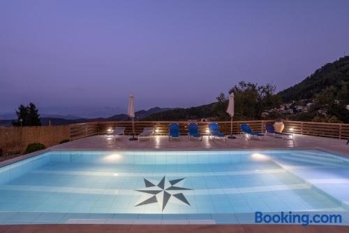 يقع مكان إقامة "Petronas Villa" في Kariá، ويوفر تراس مع إطلالة على البحر ومسبحاً خارجياً موسمياًً، بالإضافة إلى مسبح داخلي وساونا وإطلالة على الجبل. توفر هذه الفيلا مواقف خاصة للسيارات مجاناً ومطبخاً مشتركاً وواي فاي مجاني.