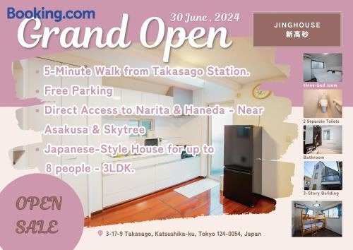 JING HOUSE京成高砂駅5分豪華一戸建て最大8人成田羽田直通無料駐車浅草スカイツリー近くtokyo Narita