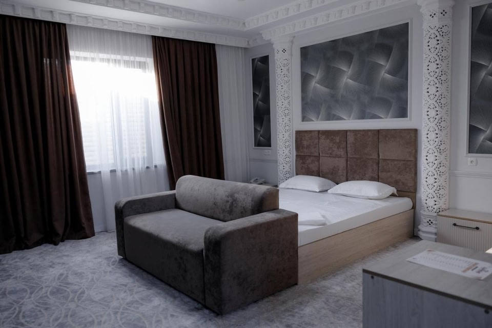 Featuring a bar, Sapphire hotels is located in Taraz. The property has a 24-hour front desk, a shuttle service, room service and free WiFi. The rooms is fitted with air conditioning, a fridge, a minibar, a coffee machine, a shower, free toiletries and a desk. At the hotel, rooms come with a private bathroom with a hairdryer and slippers. Taraz Airport is 3.1 miles from the property.