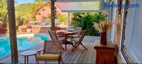 A 4-minute walk from St Jean Beach, the villa features a garden and a terrace. There's a year-round outdoor pool and guests can use free Wifi and free private parking.