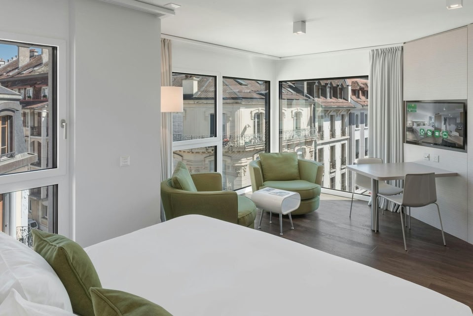 Just 164 feet from the Nyon Train Station, Base Nyon is a hotel & serviced apartment building in the center of Nyon. Each apartment includes a fully equipped kitchen with a dishwasher and a Nespresso coffee machine and free WiFi.