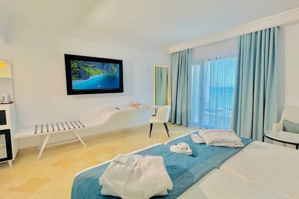 With a stay at Vincci Saphir Palace & Spa in Hammamet (Yasmine Hammamet), you'll be within a 10-minute walk of Carthage Land and Casino La Medina. This beach hotel is 0.5 mi (0.8 km) from Médina Convention Center and 0.6 mi (1 km) from Costa Mall. Relax at the full-service spa, where you can enjoy massages, body treatments, and facials. After a day at the private beach, you can enjoy other recreational amenities including an outdoor pool and an indoor pool. This hotel also features complimentary wireless internet access, concierge services, and gift shops/newsstands. Grab a bite at Yasmine, one of the hotel's 2 restaurants, or stay in and take advantage of the room service (during limited hours). Snacks are also available at the coffee shop/cafe. Unwind at the end of the day with a drink at the bar/lounge or the poolside bar. A complimentary buffet breakfast is served daily from 7:00 AM to 10:00 AM. Featured amenities include a business center, express check-in, and complimentary newspapers in the lobby. Event facilities at this hotel consist of conference space and a meeting room. Free self parking is available onsite. Make yourself at home in one of the 236 air-conditioned rooms featuring minibars. Rooms have private balconies. Complimentary wireless internet access keeps you connected, and satellite programming is available for your entertainment. Bathrooms feature separate bathtubs and showers, complimentary toiletries, and hair dryers.