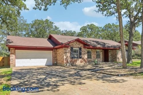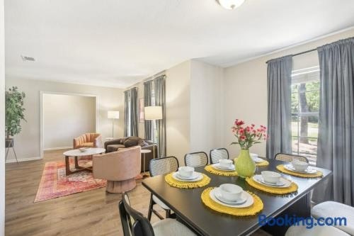 TX A&M! TAMU! Pet Friendly! 7 Beds, King & Queen! Billiards! Fire Pit Oasis! is a recently renovated vacation home in College Station where guests can make the most of the tennis court and shared lounge.