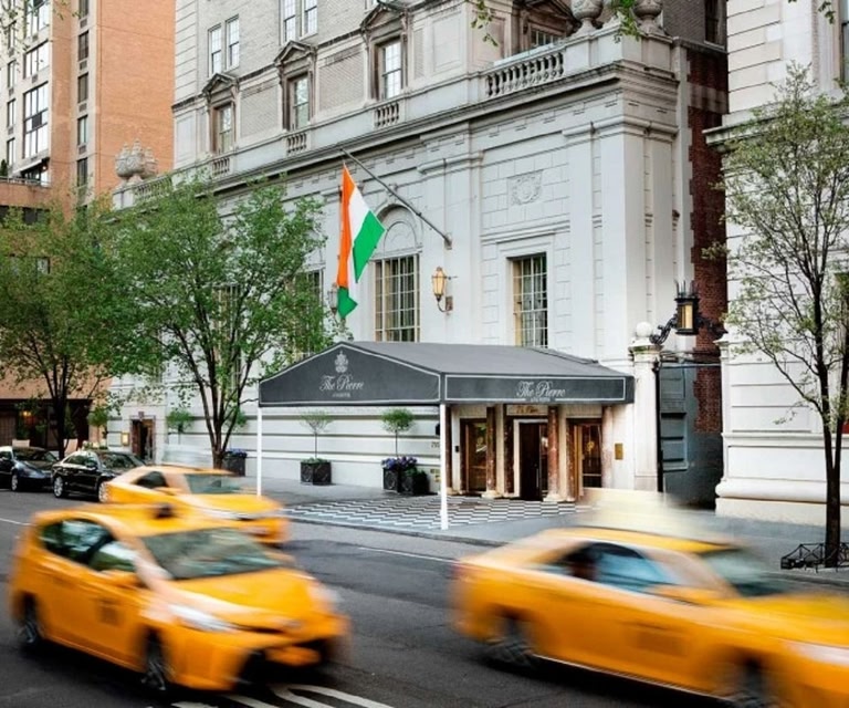 The Pierre, A Taj Hotel is located across from Central Park at 61st Street. A part of the New York City skyline with its copper mansard roof, The Pierre offers guests white glove luxury service.