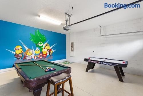 يوفر مكان إقامة "Sunset Games Retreat at Reunion Resort villa" مسبحاً خارجياً، ويتمتع بموقع ملائم في حي سيلابريشن في أورلاندو على بُعد 12 كم من منتزه بليزارد بيتش المائي في ديزني و12 كم من عالم ديزني الرياضي الواسع.