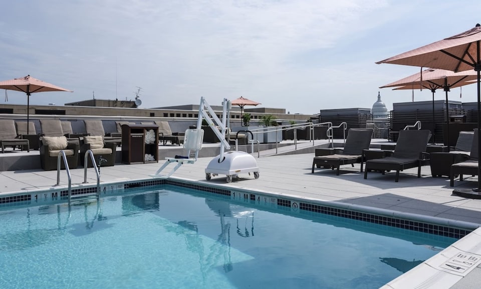 The Holiday Inn Washington Capitol-National Mall is a modern hotel near the National Mall, The Wharf DC, and the United States Capitol Building. Our location places you within walking distance of the National Air and Space Museum, National Museum of Natural History, Museum of the Bible, International Spy Museum, Museum of African American History and Culture, and of course, the gorgeous National Mall. In addition to DC’s most popular attractions, numerous government agencies and offices such as DOE, DHHS, FAA, FEMA, HUD, NASA, USDA, and the American Farm Bureau Federation are within walking distance. Book your stay just minutes from Washington’s most storied historical sites, including the Washington Monument, Jefferson Memorial, World War II Memorial, and Martin Luther King Jr. Memorial. Amenities include free high-speed Internet access, a mini refrigerator, a Keurig coffeemaker, and an in-room safe. With 8,000 square feet of dynamic meeting space, our experienced staff will ensure that your next meeting or event in DC goes exactly according to plan. Relax at our seasonal rooftop pool and bar. Get a workout in at our 24-hour fitness center. Enjoy a cup of coffee from the on-site full-service Starbucks or a meal from the Capitol Bistro or 21st Amendment Bar and Grill before exploring the Washington, DC area. Remember, kids eat free at Holiday Inn!