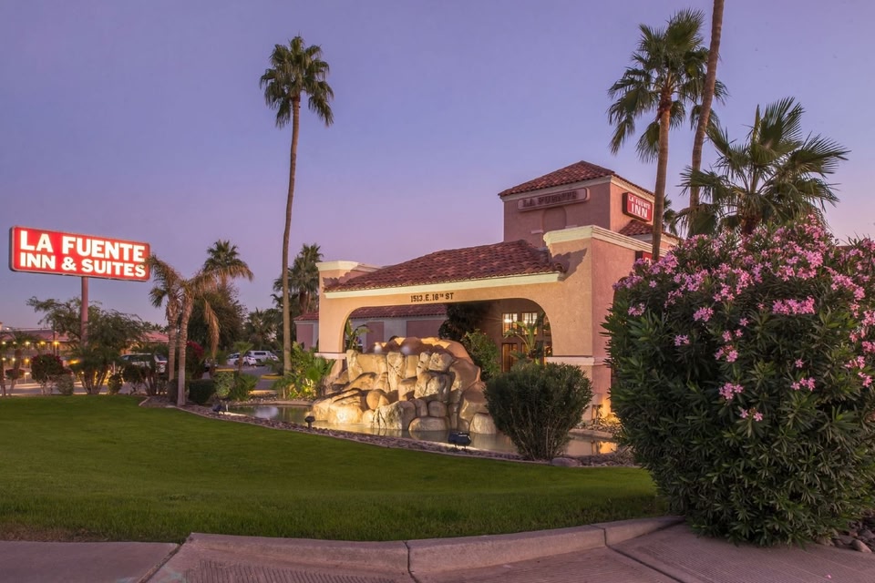 Located 3 miles from Yuma International Airport, La Fuente Inn & Suites offers free airport shuttles, an outdoor pool and free WiFi. Guest rooms feature a 43-inch flat-screen TV with cable channels.